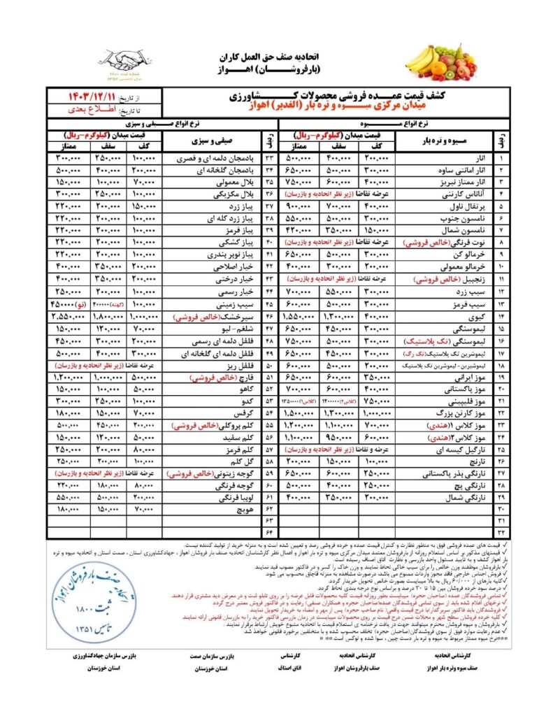 رده بندی ها نرخنامه ۱۰ اسفند ۱۴۰۳نرخ نامه ۱۱ اسفند ۱۴۰۳راهبری نوشتهپست قبلی نرخ نامه ۷ اسفند ۱۴۰۳ بعدی نرخنامه ۱۴ اسفند ۱۴۰۳ دیدگاهتان را بنویسید لغو پاسخبرای نوشتن دیدگاه باید وارد بشوید.