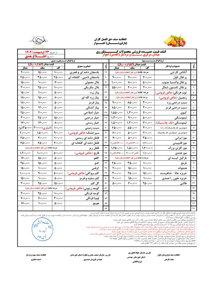 رده بندی ها نرخنامه ۲۳ اردیبهشت ۱۴۰۴نرخنامه ۲۳ اردیبهشت ۱۴۰۴راهبری نوشتهپست قبلی نرخ نامه ۸ اردیبهشت ۱۴۰۴ بعدی نرخنامه ۲۷ اردیبهشت دیدگاهتان را بنویسید لغو پاسخبرای نوشتن دیدگاه باید وارد بشوید.